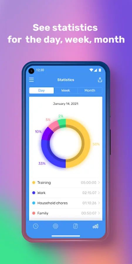 📊Statistics - will help to conduct time management and timekeeping, graphs clearly show the results of the day "life cycle", week, month; analyze and optimize the mode of the day!
