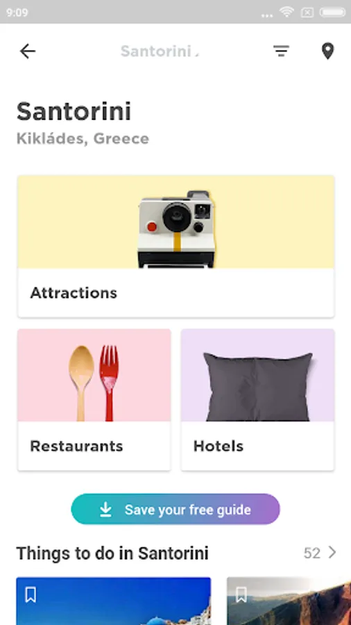 Santorini has much to offer. Visiting its monuments, wandering its streets, meeting the people and learning their customs is a must. That's why you have this guide to Santorini , created using photos and recommendations from real travelers. And remember that you can save your lists offline. Santorini is waiting for you!