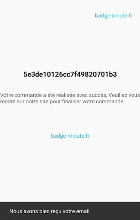 To finalize your order click on the website link badge-minute.fr which will redirect you automatically.
