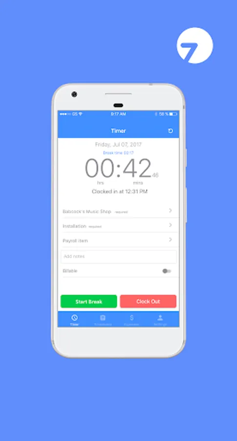 Minute7 enables you and your employees to track time and expenses through your Android phone - or tablet -, and to sync seamlessly with Quickbooks Online and Desktop.