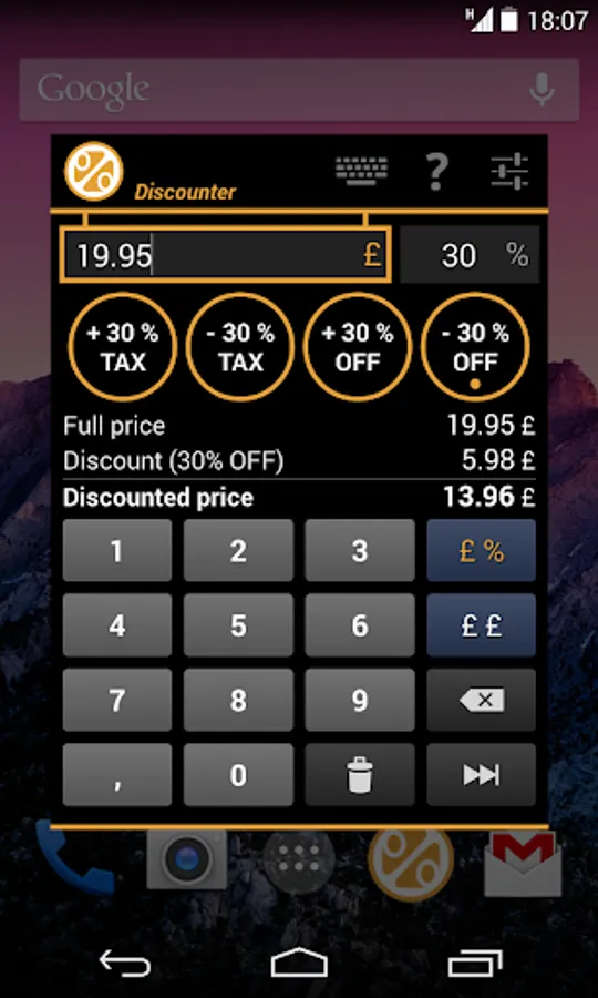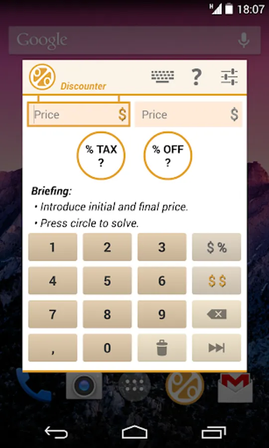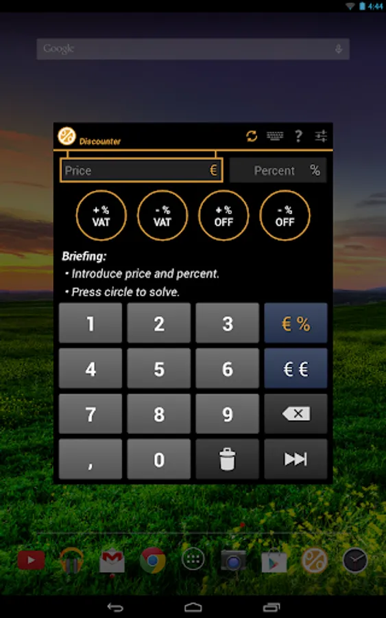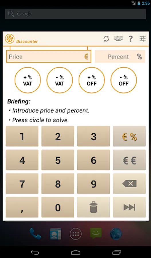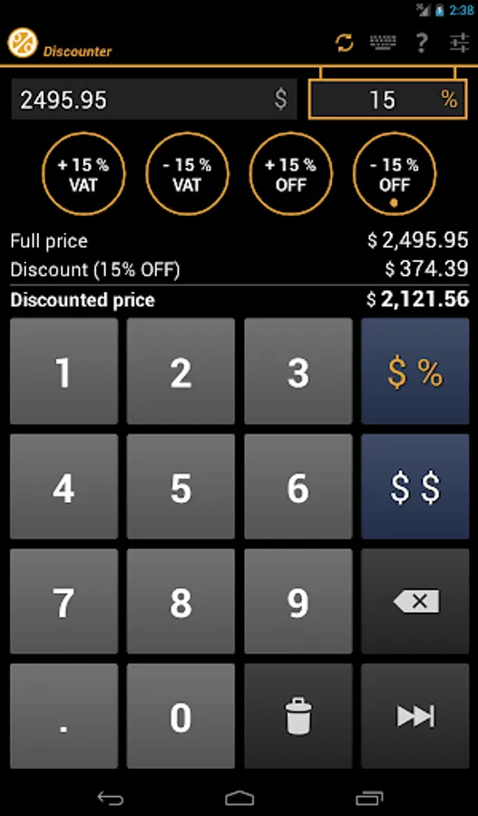 As easy as clicking a circle, after inserting price and percent or just two prices!