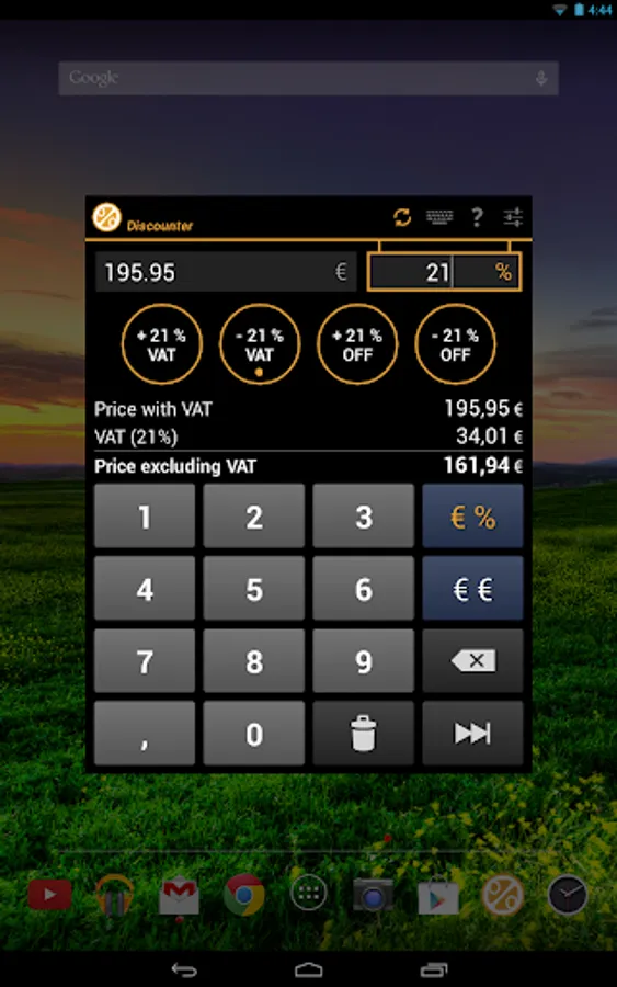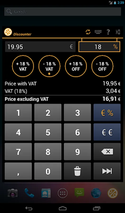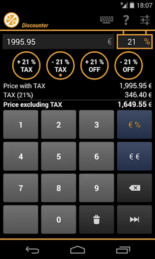 • Calculate the VAT that is already included in a price (know how much you can deduct; great for ¨TAX free days¨, price without VAT...).
