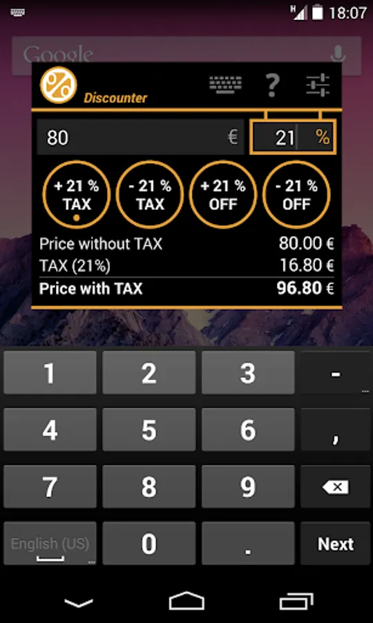 • New button on the top bar to switch between '€ €' and '€ %', in case built-in keyboard is hidden.