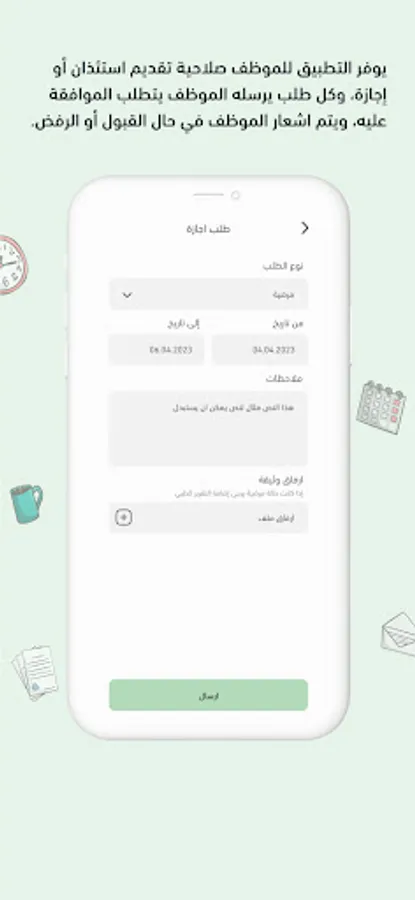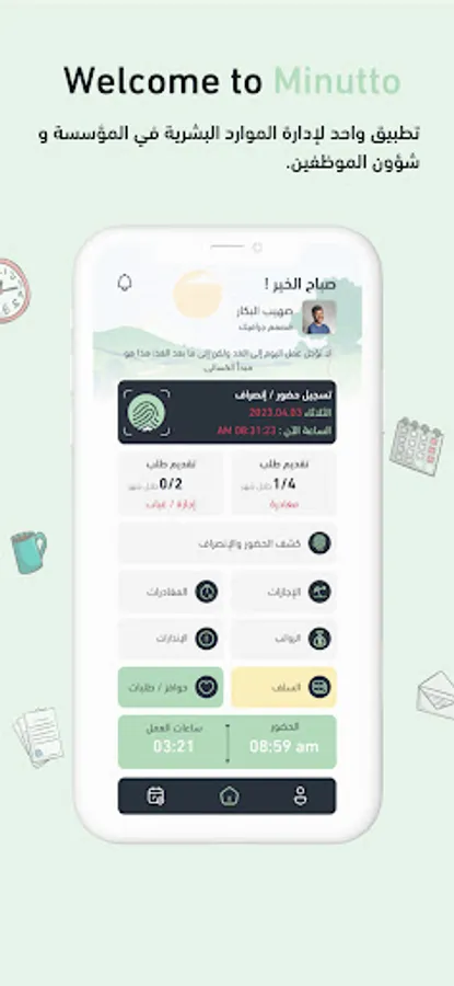 Recording attendance and departure movements through the employee's mobile phone.