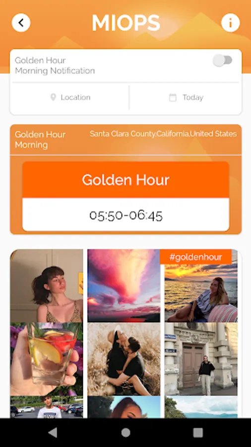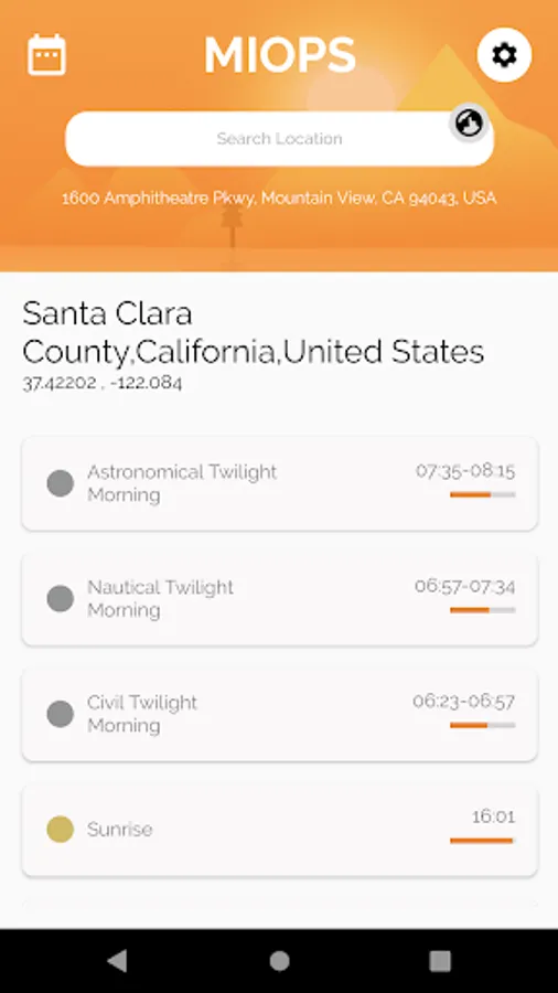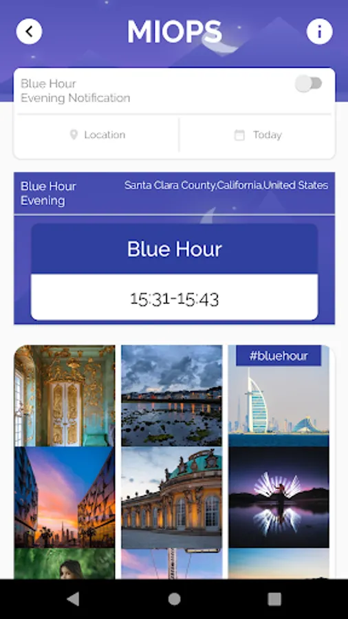 - You can search the golden/blue hour times of the desired location.