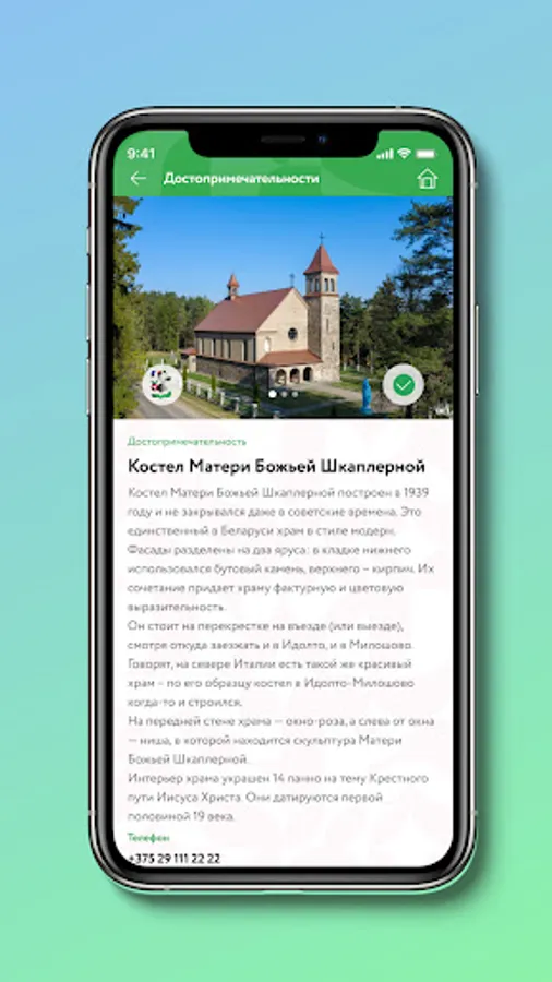Application "Miory Go!" designed for ease of movement in the Miory district. With its help, you can easily find and get acquainted with all the historical and natural sights of the Miory region.