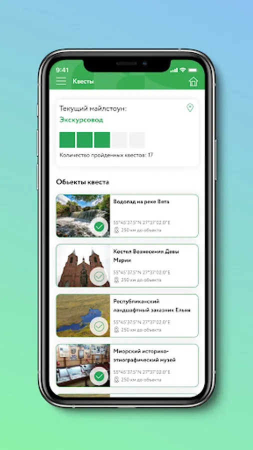 The first block is Quests that will give your trip unforgettable memories. When visiting attractions, you can scan QR codes located next to the object, so you will progress through the Quest and increase your level. You can share your achievements on social networks.