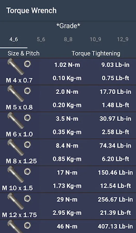Torque Wrench gives you the recommended moments of tightening the screws.