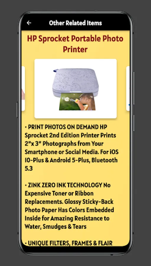 Content of mi photo printer guide app :-