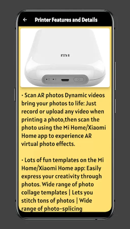 - mi photo printer guide Features & Details