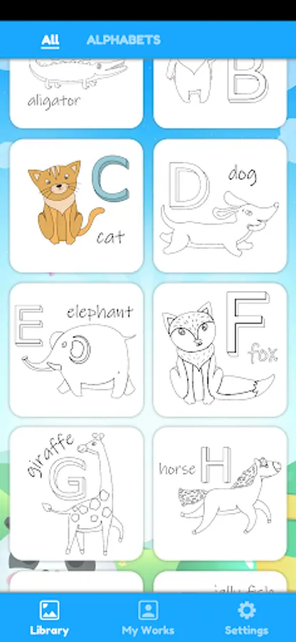 Learn alphabets while coloring the pictures. More levels coming soon...