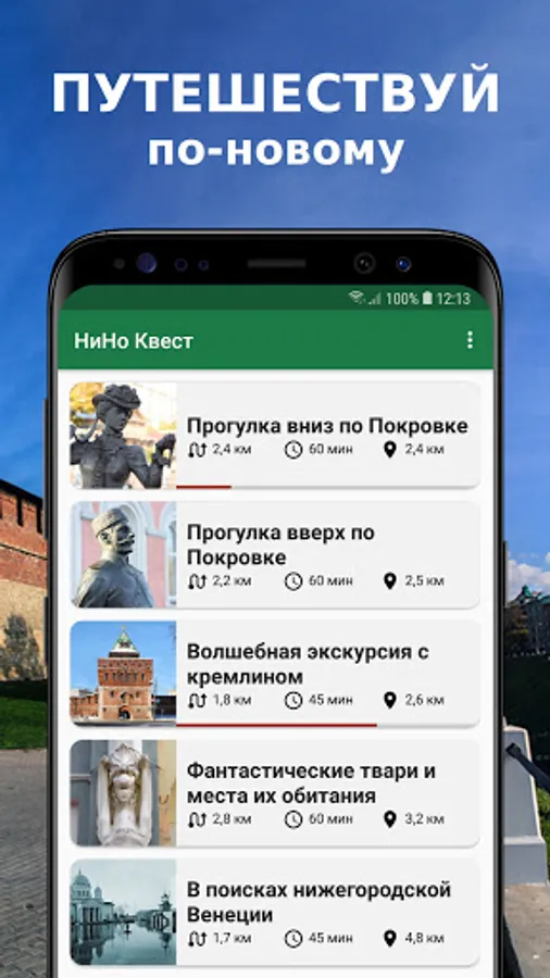 First time in Nizhny Novgorod or lived here for a while and want to explore the city? Looking for a sight-seeing tour or just strolling with friends? Walking with family or planning a date? In any case NiNo Quest is a perfect choice. This app is a game, an adventure, and an excursion all-in-one. Choose your route, solve the riddles and have fun!