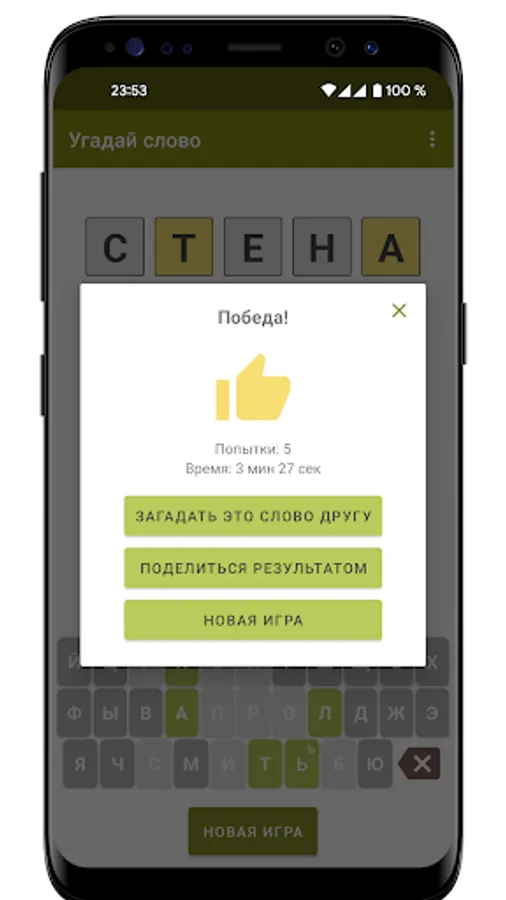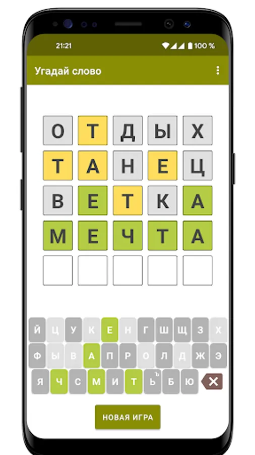 You can play with 4-, 5- or 6-letter words, send words you liked to your friends and share results.