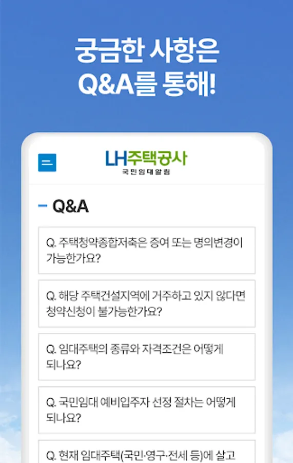 - In Q&A, you can solve inquiries about national rental, national rental apartments, permanent rental, and SH sales.