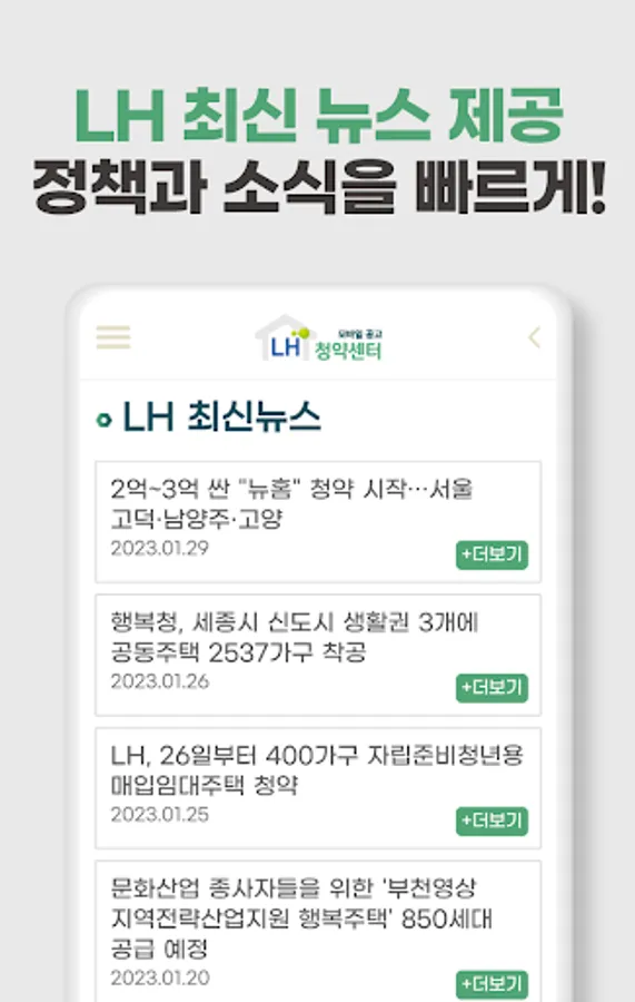- In the LH Subscription Center app, you can check and read the latest policies and news related to LH Housing Corporation.