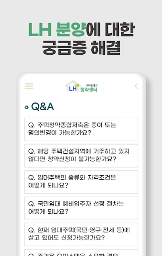 - The LH Subscription Center app provides real-time notifications by region/rental type. You can inquire various types of sales such as permanent lease, apartment, national lease, chartered lease, and happy house.