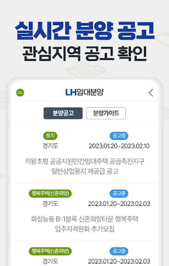 We provide LH real-time sales news through a map so that you can check the announcements in the area you want at a glance. Easily check LH's rental sales and supply plans in 2023! You can easily and conveniently receive the latest news updated daily with pop-up notifications.