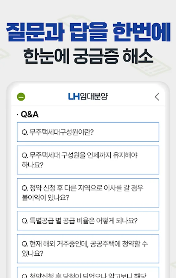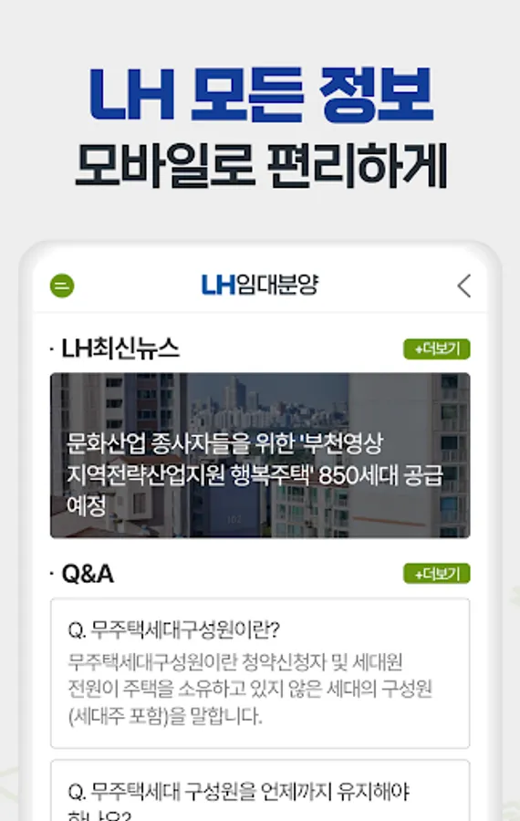 - Provides contents related to sales procedures and application qualifications for happy housing, rental subscription, national rental, etc.