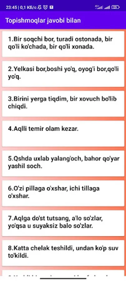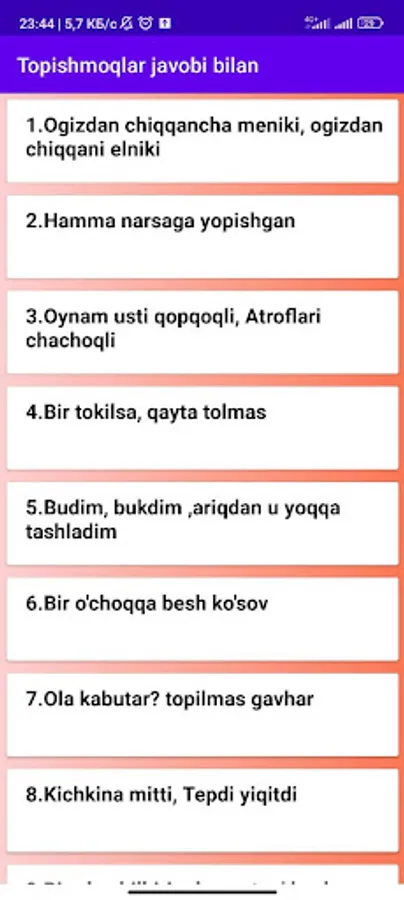 Topishmoqlar to'plami-Eng sara topishmoqlar javobi bilan