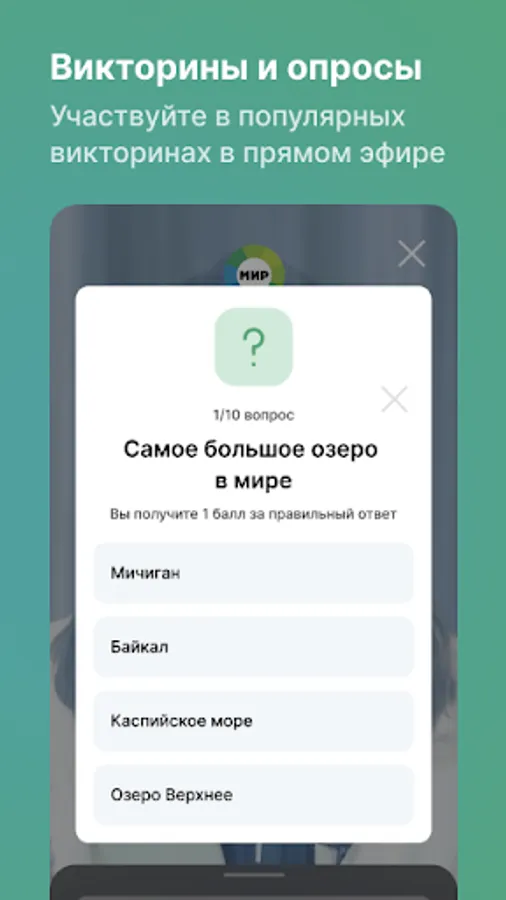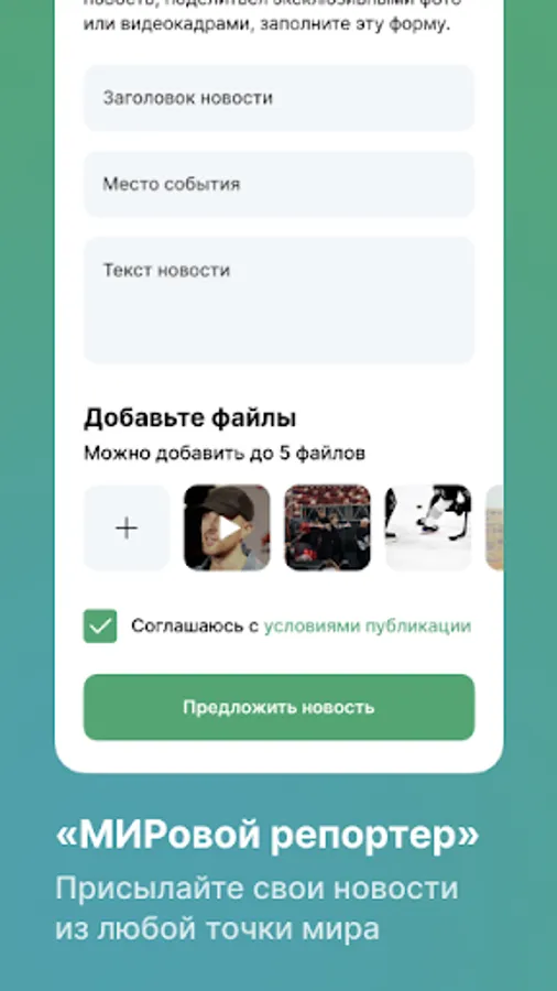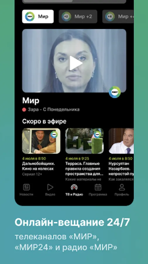 The official application of MTRK "Mir" allows you to not only follow all important events in the CIS countries and abroad in a convenient mobile format, but also report on them from anywhere in the world using the "WORLD Reporter"! News feed, weather forecast and exchange rates, online broadcasting of MIR, MIR24 TV channels and MIR radio station - 24 hours a day, a convenient TV program, quizzes, polls and user ratings are just some of the features that are available in the application " WORLD TV" on smartphones and tablets. THE WORLD is one for all!