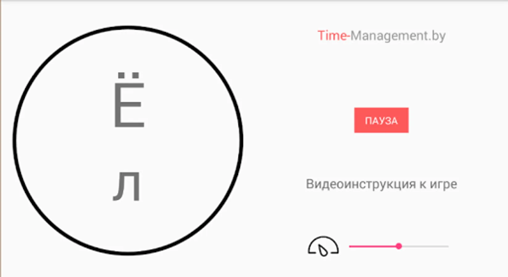 The game lasts for 10-15 minutes. Before the game, specify a goal you want to achieve with the game. For example, you want to relax or to find a solution of problem (specify problem). Then start the game. The screen will show the letters. You need to say aloud the top letter and at the same time depending on the letters below to perform a certain action.