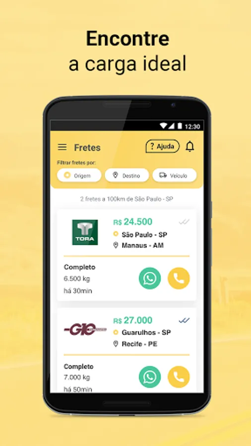 3 - Choose the cargo and speak directly with the shipper. That's it, count on our support throughout your journey.