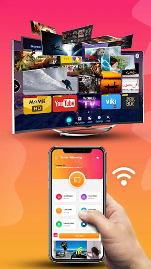 To use the Screen Mirroring Free feature your smart Tv must be connected to the same Wi-Fi with which your phone is connected for Screen Mirror Free. Screen Mirror App works as a Screen Casting to view your phone on your TV's large display. Enjoy & play mobile games on your smart TV display with Screen Mirror App to boost your gaming experience. TV Mirror is most helpful for Screen Sharing of mobile browsers to your favorite TV. Smart View Samsung TV Mirror cannot use & share any of your personal photos, videos, or documents with any other third party. It’s just a small Free Mirror App to share your mobile screen on Smart TV to boost your watching experience at home. Cast to lg Tv shares the whole phone screen with your TV display without any lag or buffering. Cast Phone to TV support all types of TV models including Android TV,s like smart view Samsung tv, Screen Mirroring for Roku, multi net, LG, and Sony.