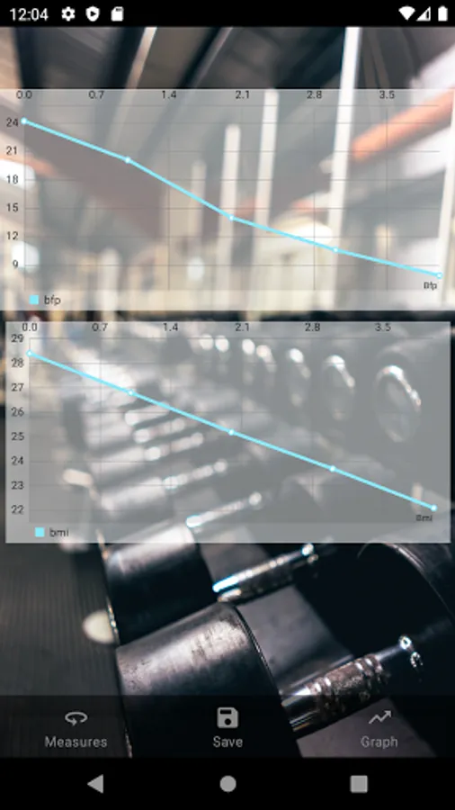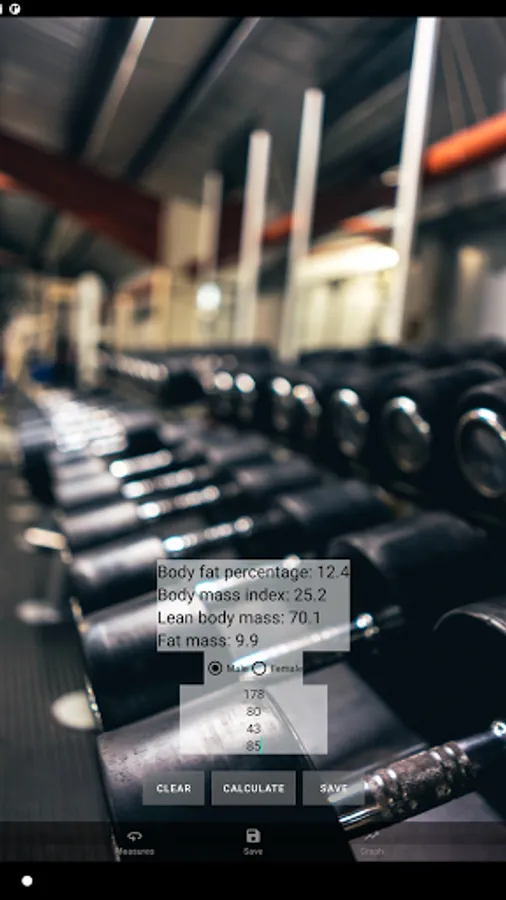 myBody is a body fat calculator which uses US Navy formula. Save and draw line graph options are available.