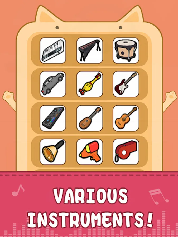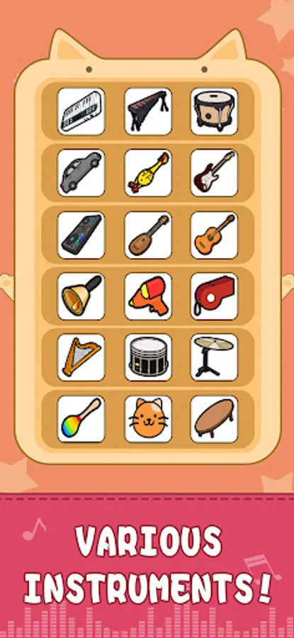 Use different kinds of instruments which include piano tile and beat editor, and even the funny ones like screaming chicken toy, small car model, and even Acappella of cat, to play your special interesting music!