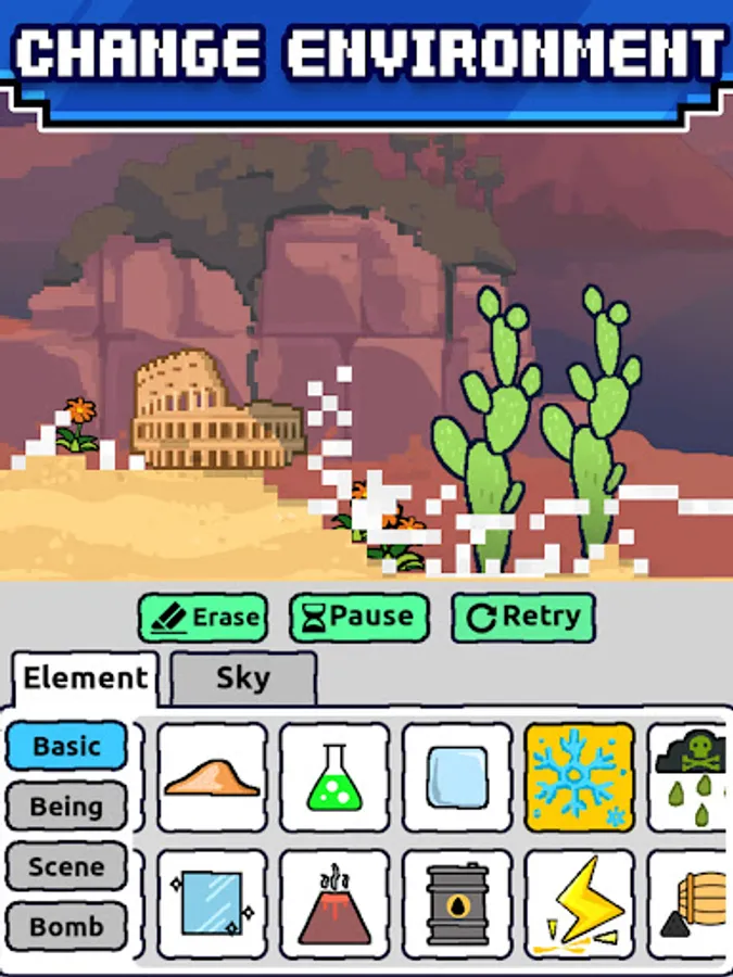 Design your unique pixel sandbox with tons of colorful powders and pixel images, take an absolutely amazing screenshot and share it with your friends!