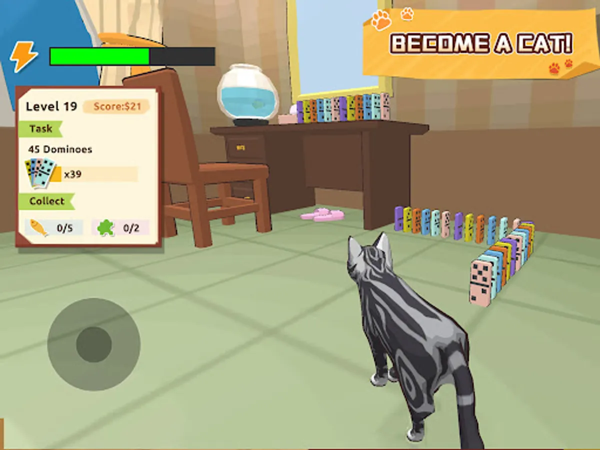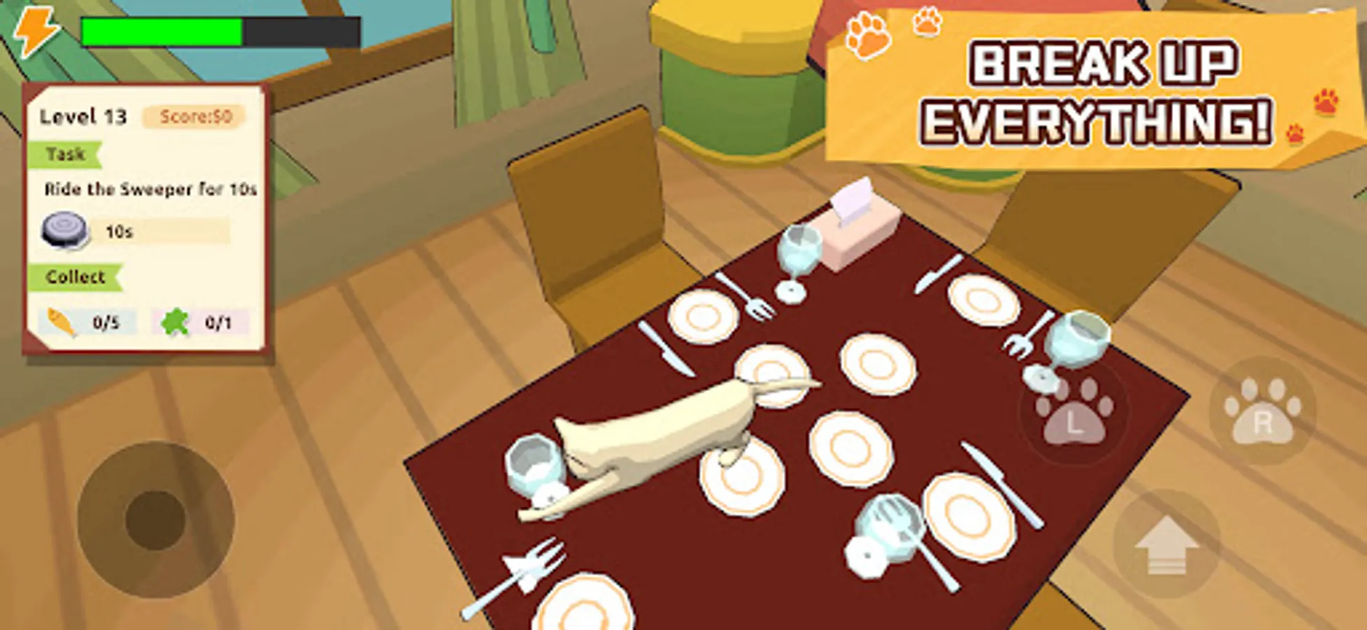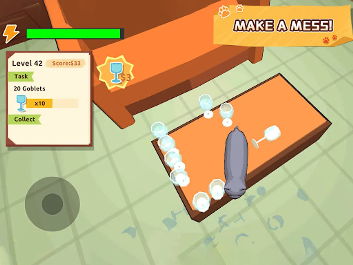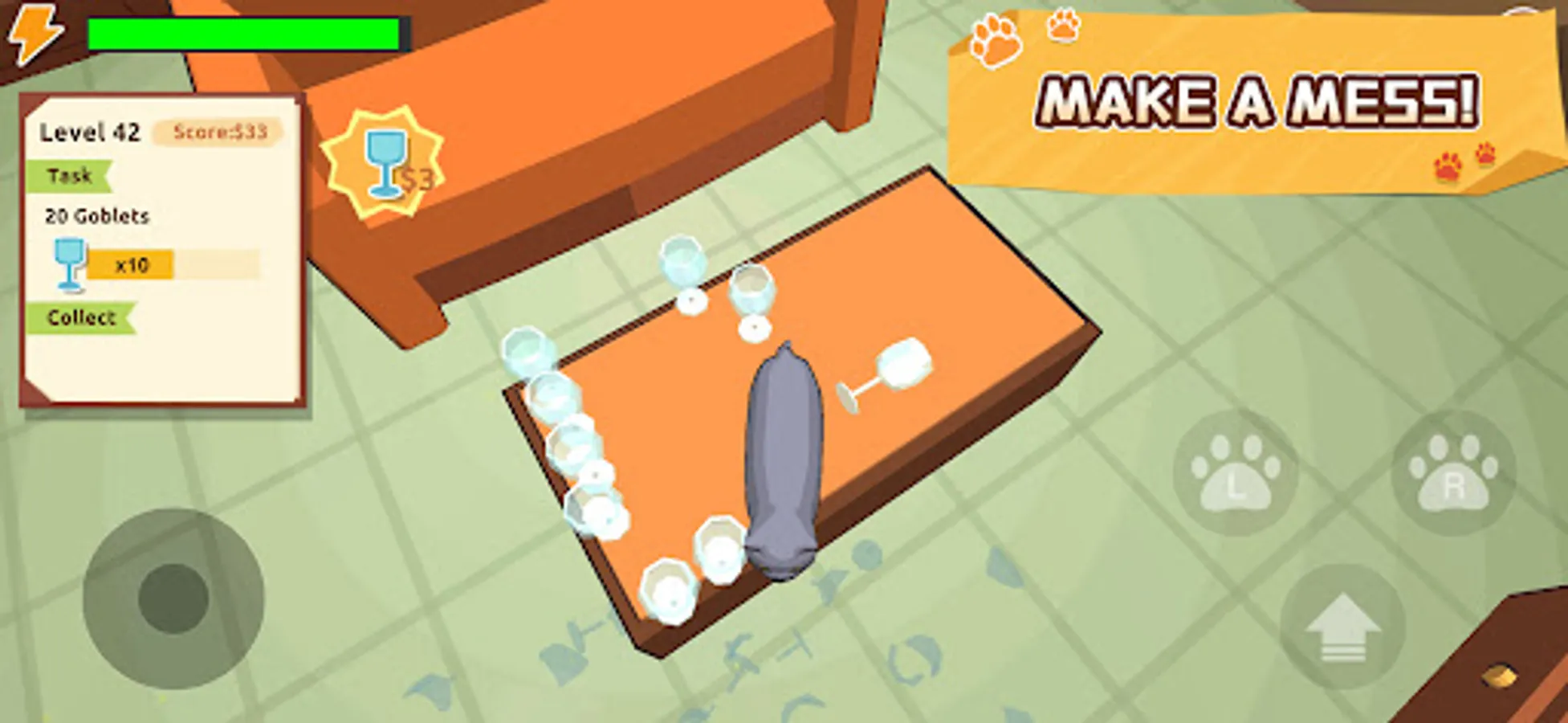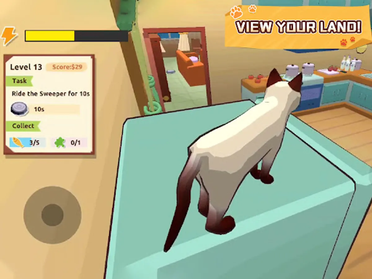 - Use right hand to control the cat paws and jump. Press your finger on the screen and drag to move the camera.