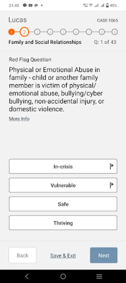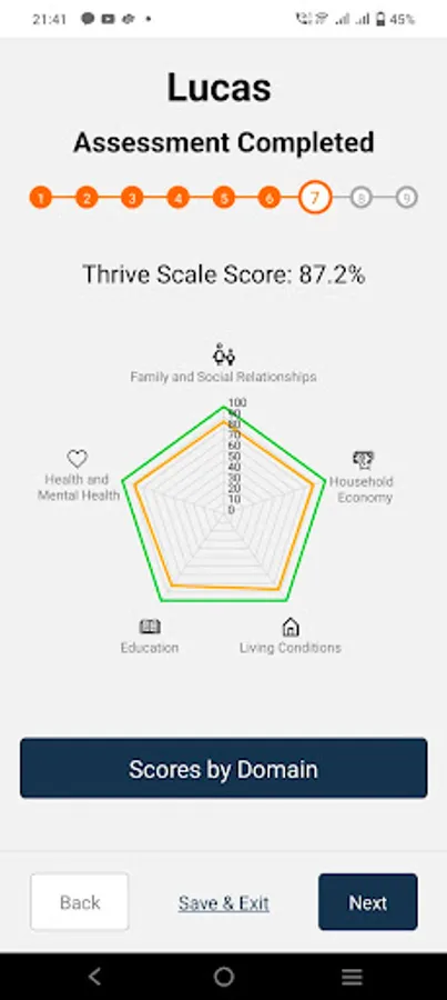 The Thrive Scale™ is a revolutionary case management application that allows the progress of a child's wellbeing to be measured and risks to be assessed at every stage of the case management process. The Thrive Scale™ focuses on five well-being domains: Family & Social Relationships, Household Economy, Living Conditions, Education, and Health and Mental Health.