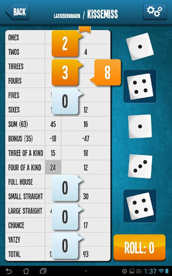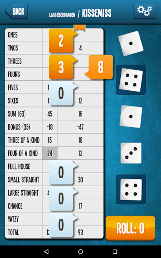 - Training mode (Let's you see the anticipated end score depending on choice of dice)