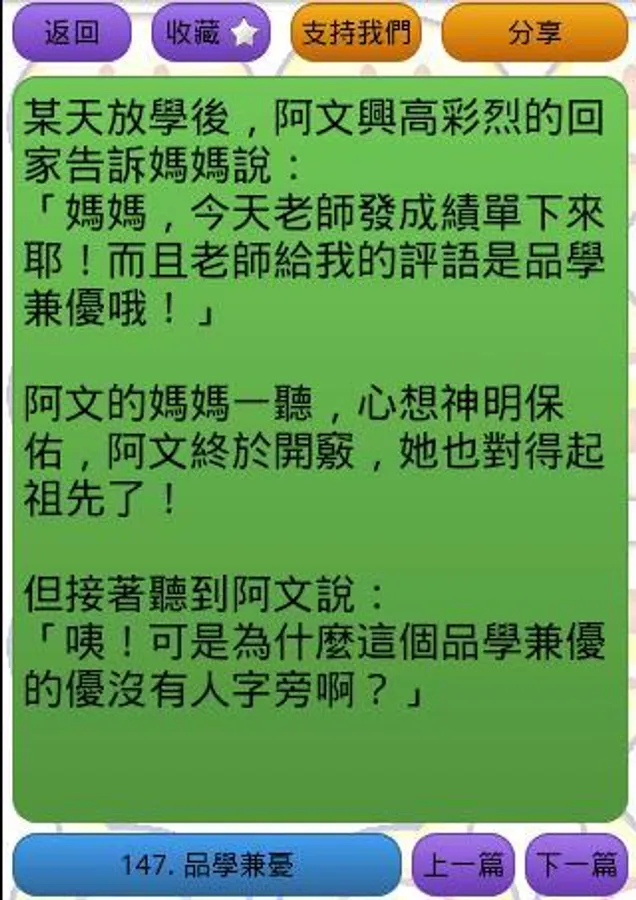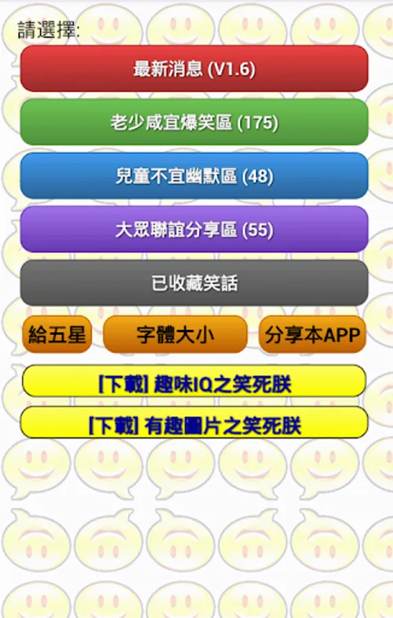 本App是Andriod App「笑話連篇之笑死朕」之贊助版,絕無廣告,高質笑話!