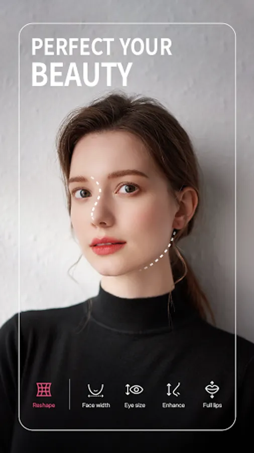 - Enlarge eyes, adjust face or head, dye hair, and tweak other facial features in real time. Customize your beauty solutions—from now on, all your selfies will be more than perfect!