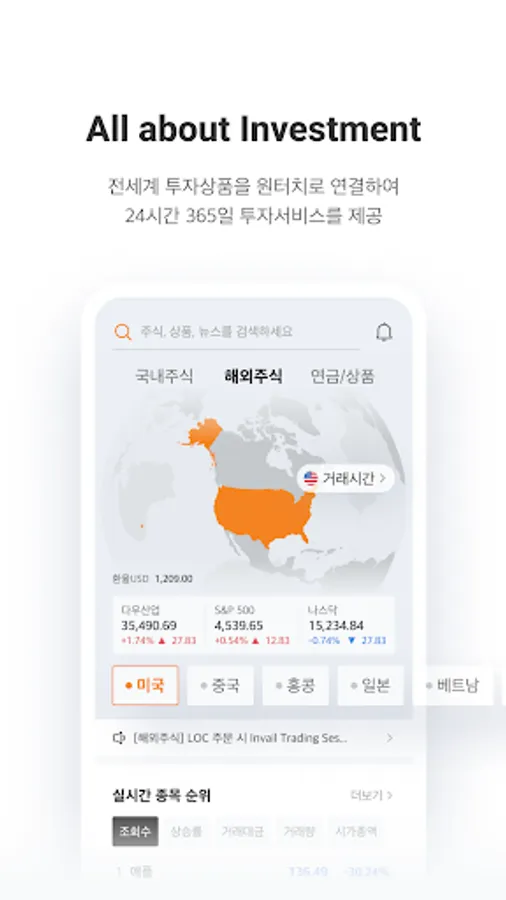 -Provides a financial investment platform that allows one-touch access to domestic stocks as well as overseas stocks, pensions, financial products, and other investment products around the world and allows 24-hour trading.