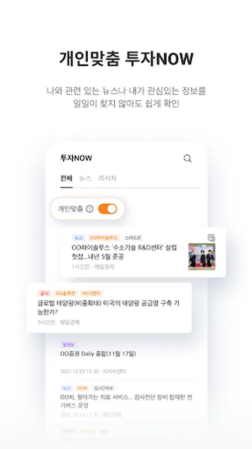 -You can search for domestic/overseas stocks, products, and investment information you want with one keyword, and collect news, research, and financial information you are interested in from the integrated feed without having to search for them individually.