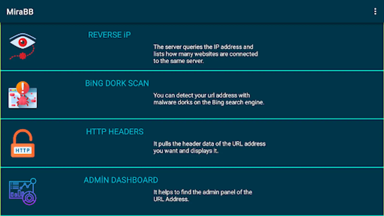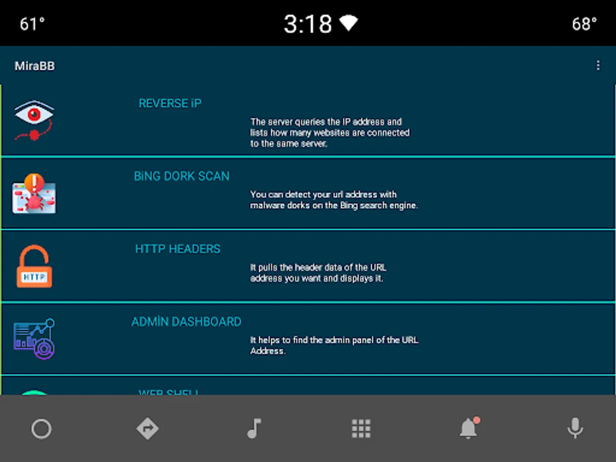 hello user mira welcome to the bug bounty application, this application is designed as a cyber security test kit, with this application you can test the security vulnerabilities of your own internet address's server and take precautions, on the other hand, you can legally use it for bug bounty transactions. they are not responsible for us in any way. This app is purely intended for legal use for testing purposes. the application is under development, various applications will continue to be added to it day by day and after 1 purchase you will be able to use it as a lifetime license without any charge, It contains a powerful attack tool with layer 7 botnet attack. With this attack tool with layer M7 version, it is possible to make anonymous secret attacks without detecting ip ban and ip. You can use the application in your car, on your TV, on your Android desktop, on your tablet, on your phone. Designed to be compatible with all thank you