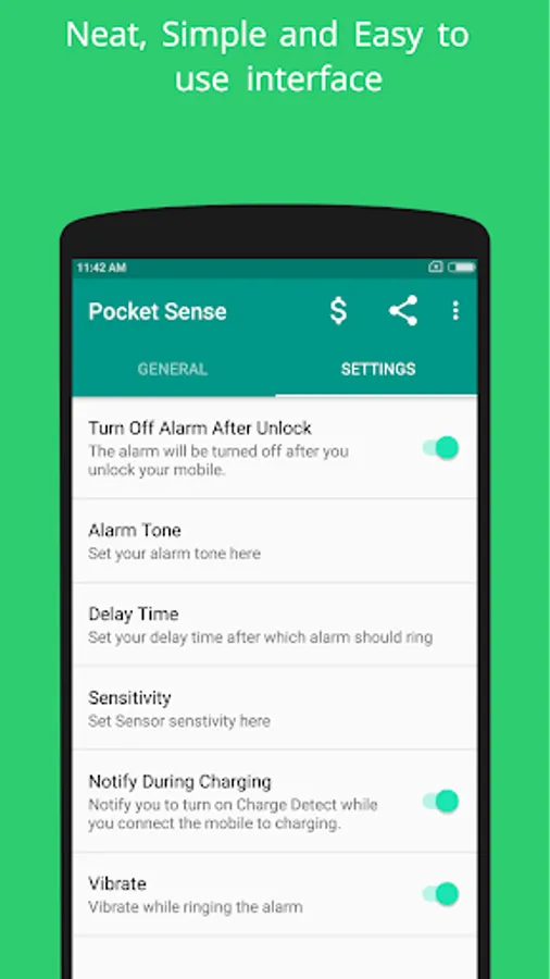 That's it! Now, You will get notified through an alarm if any mobile thief takes the mobile out of your pants pocket. You can turn off the alarm simply by unlocking the mobile or by turning off the pocket sense mode.