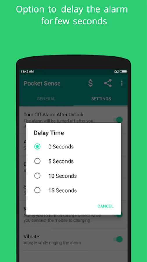 4. You can delay the alarm for few seconds to stop getting triggered instantly.