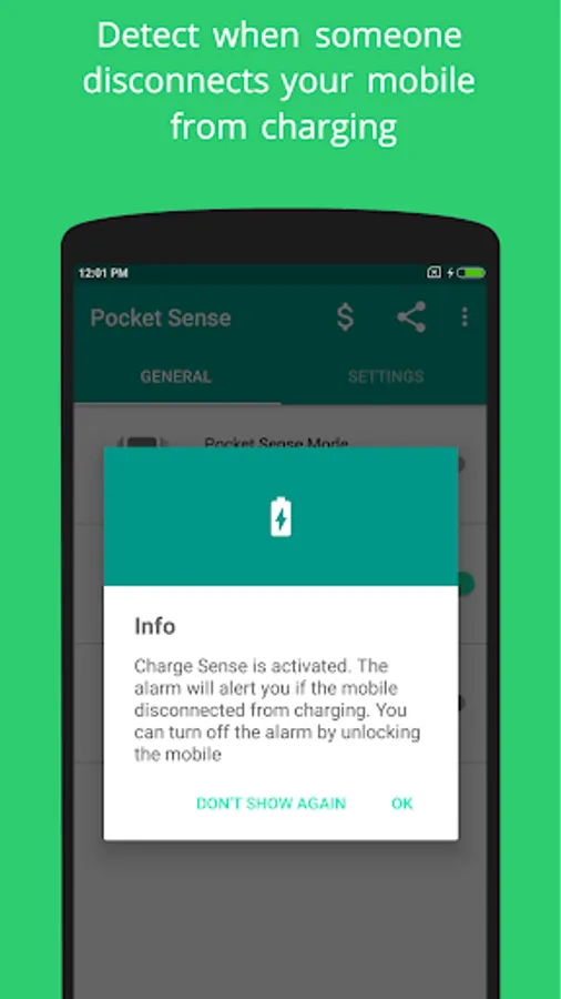 2. Charge Sense Mode - Notifies you through an alarm if someone disconnects your mobile from charging.