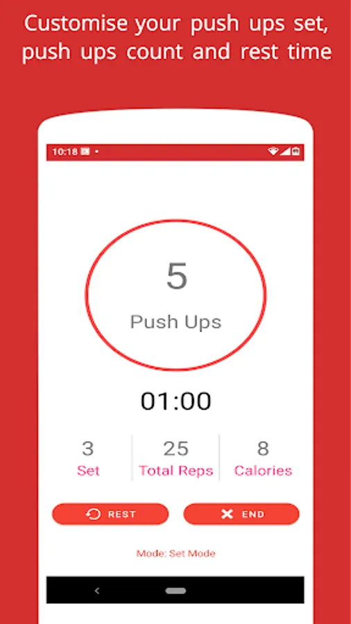 You can customize the number of push ups workout sessions, count, and rest time on the settings. Choose different modes like set mode or continuous mode which fits your need for each workout session.