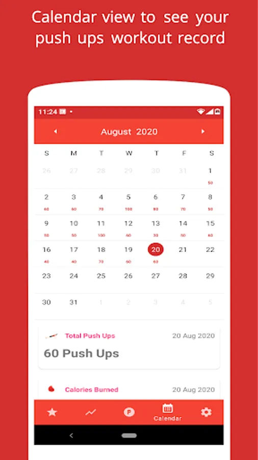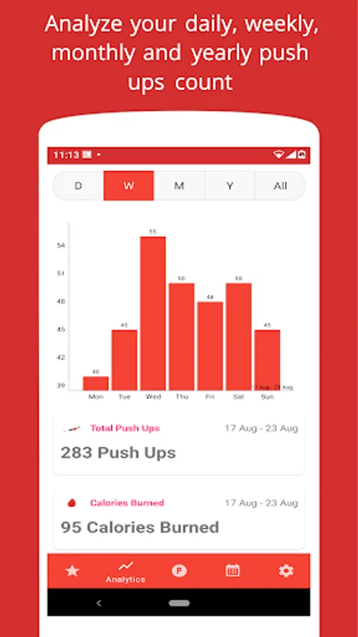 4. Analyze your workout sessions, calories burned and top push ups record on daily, weekly, monthly, and yearly intervals