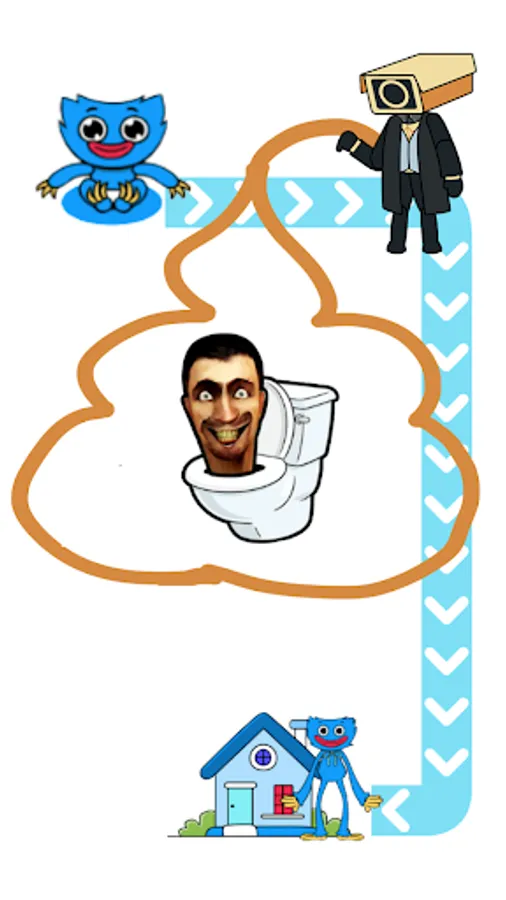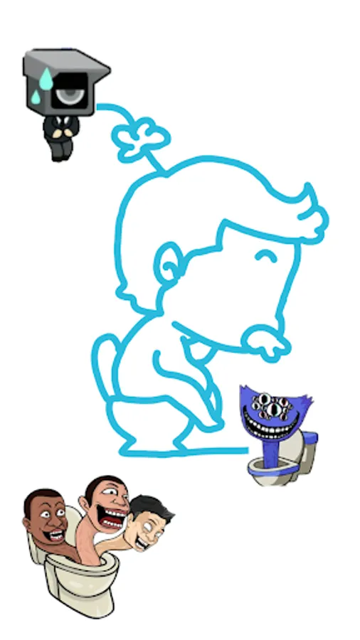 The skibidi toilet army are attacking camera man and his friends. Help them draw the line to reach toilet head and flush them away