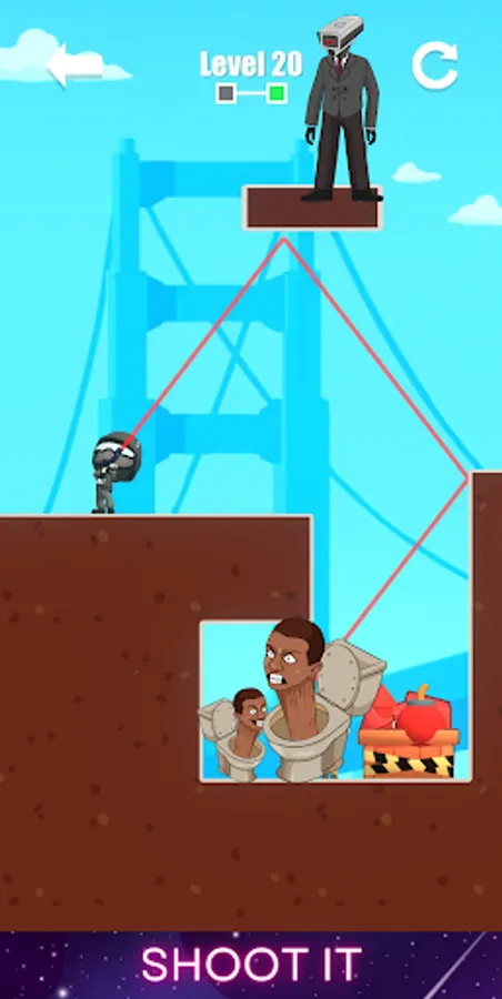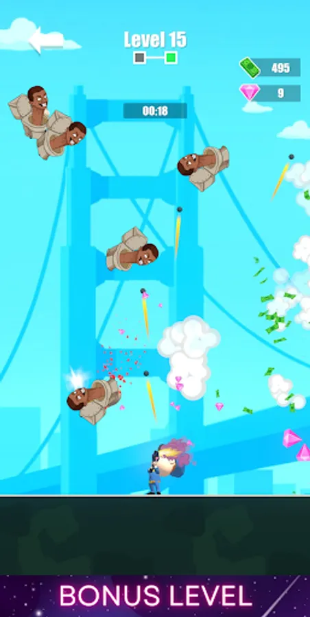 Its operation is very simple. You only need the tap screen to launch the bullets. Defeat your enemy, advoid the obstacles and escape after completing the incredible task