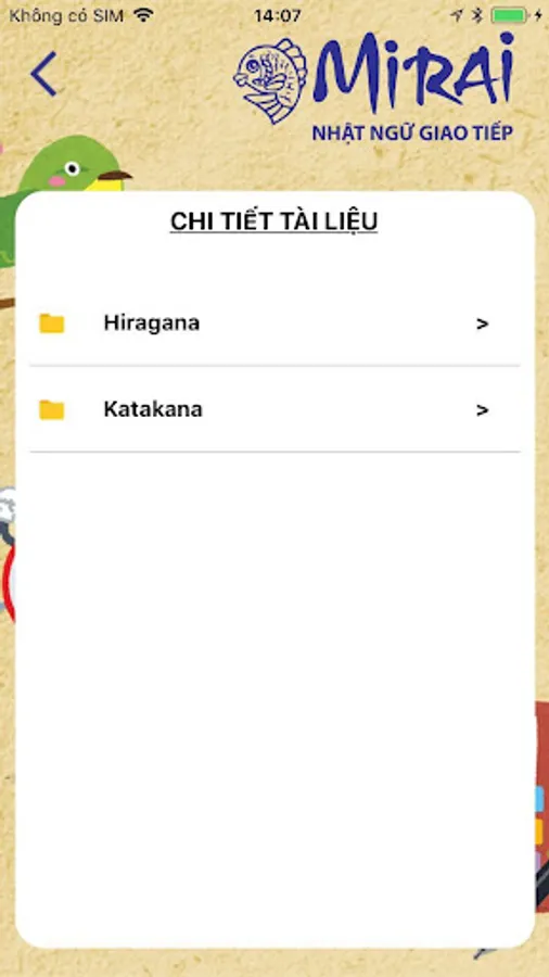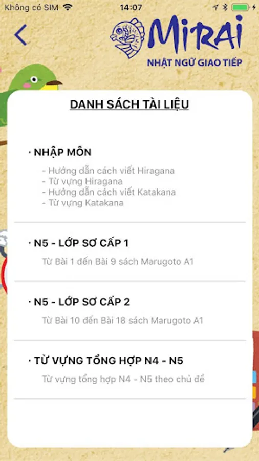 The application of the Japanese Language Center MIRAI to help students access to the account and view the course materials at the center, the content updated all the materials of the center support students more convenient during the study. episodes