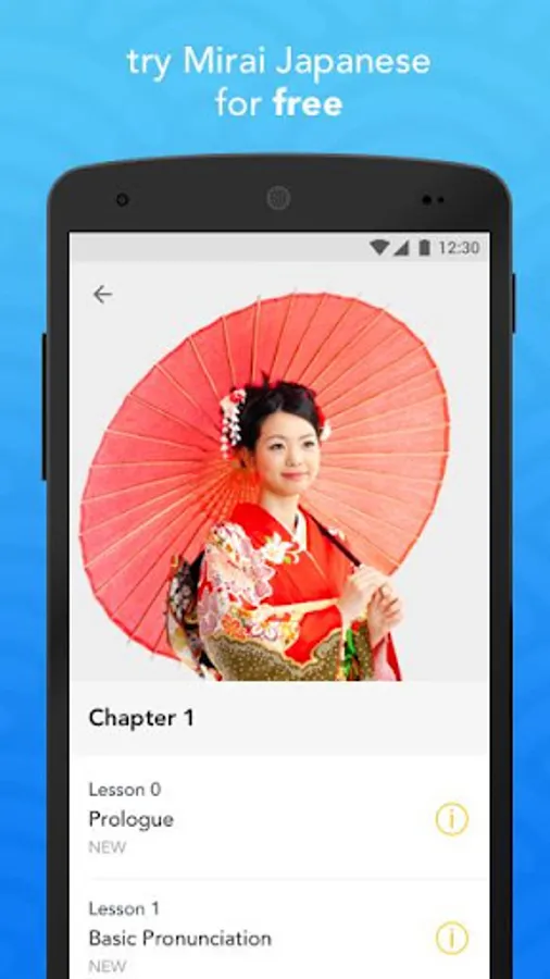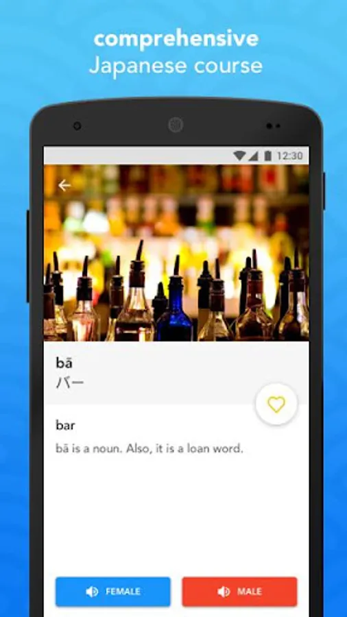 This app actually teaches you the basics of Japanese — grammar, pronunciation, the writing system, and the usage of words — using an effective and clear methodology which you will thoroughly enjoy!