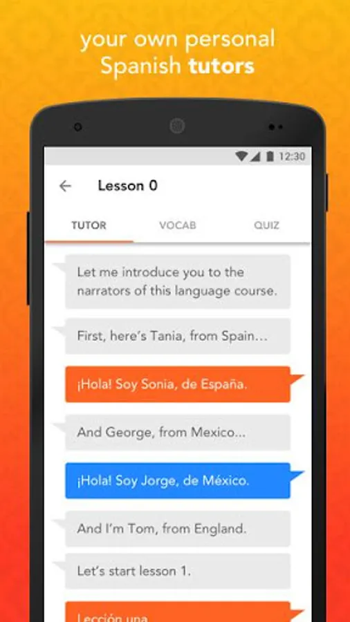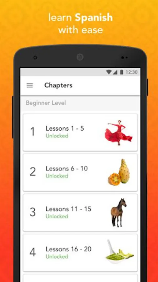This app actually teaches you the basics of Spanish — grammar, pronunciation, vocabulary, and the usage of words — using an effective and clear methodology which you will thoroughly enjoy!