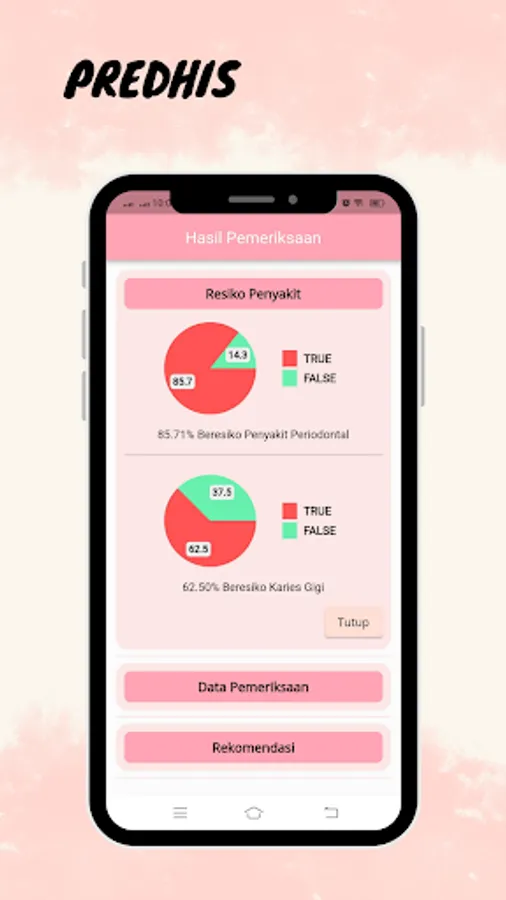 The PREDHIS application is an application for detecting risk factors for dental and oral disease in pregnant women based on those that directly interact with the disease process (tooth structure, condition of saliva, food, and length of time the oral cavity is exposed to an acidic environment) and the underlying factors (social conditions). economics, history of disease and previous dental treatment, history of diseases related to dental health and behavior of pregnant women). The disease factors studied were dental caries or cavities and periodontal disease.