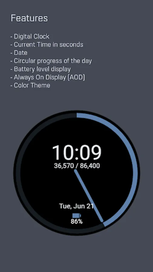 Also, below the main digital clock, the elapsed time of the day is displayed in seconds.